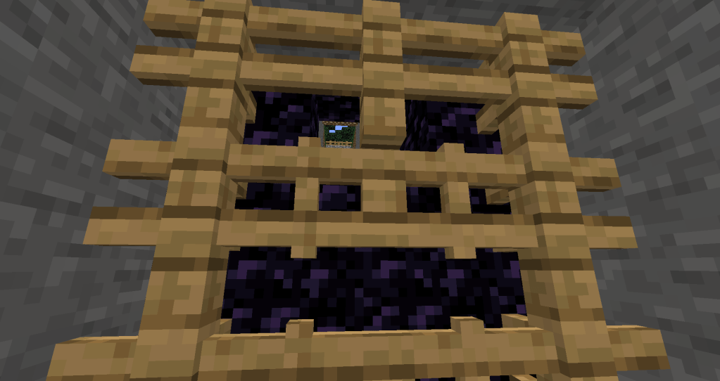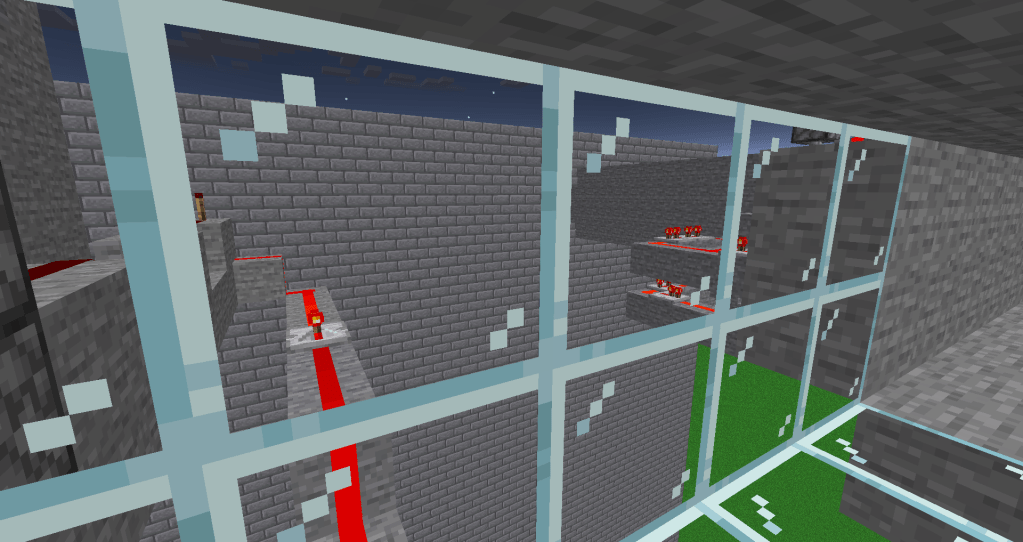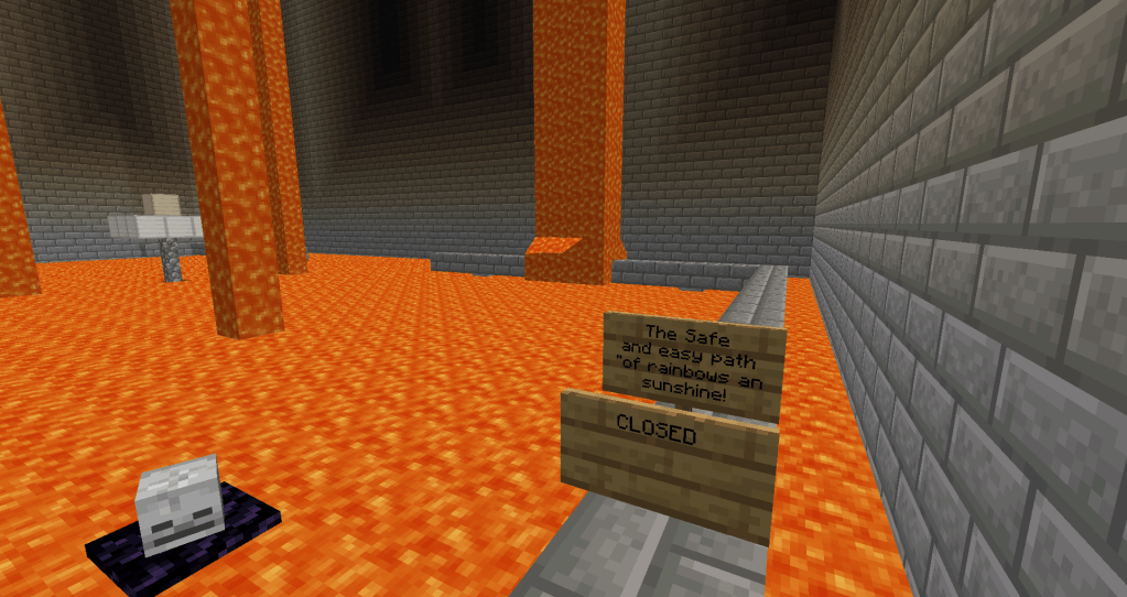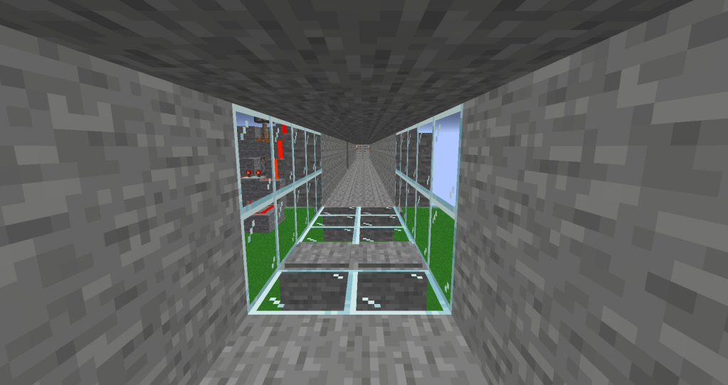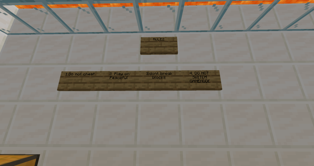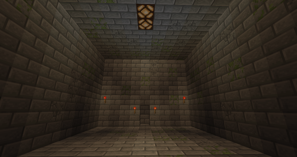 The prison room… Why was it so large??? I remember I gave up on placing vines since it could be used to skip the parkour… Not to mention my brilliant exit sign, it glows red sometimes because redstone ore…