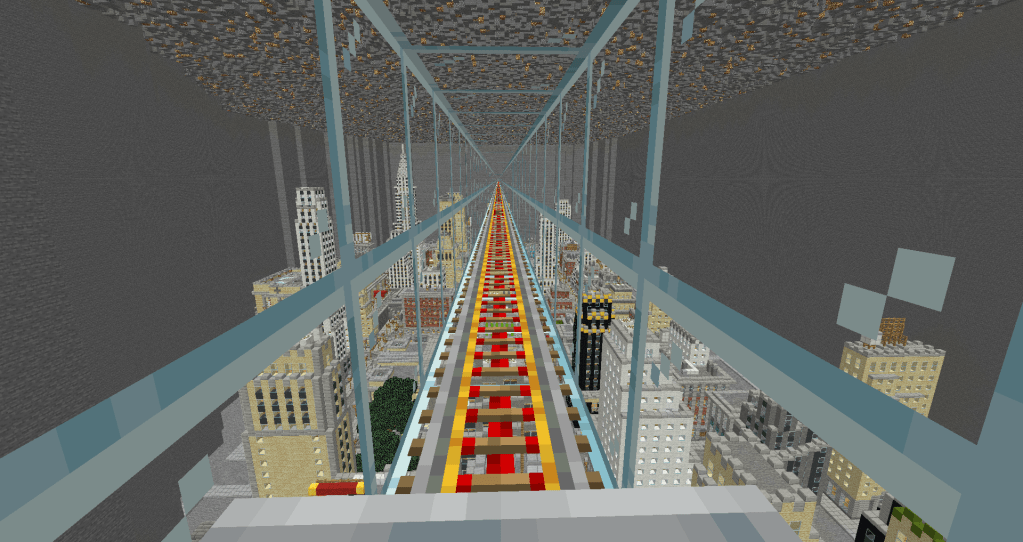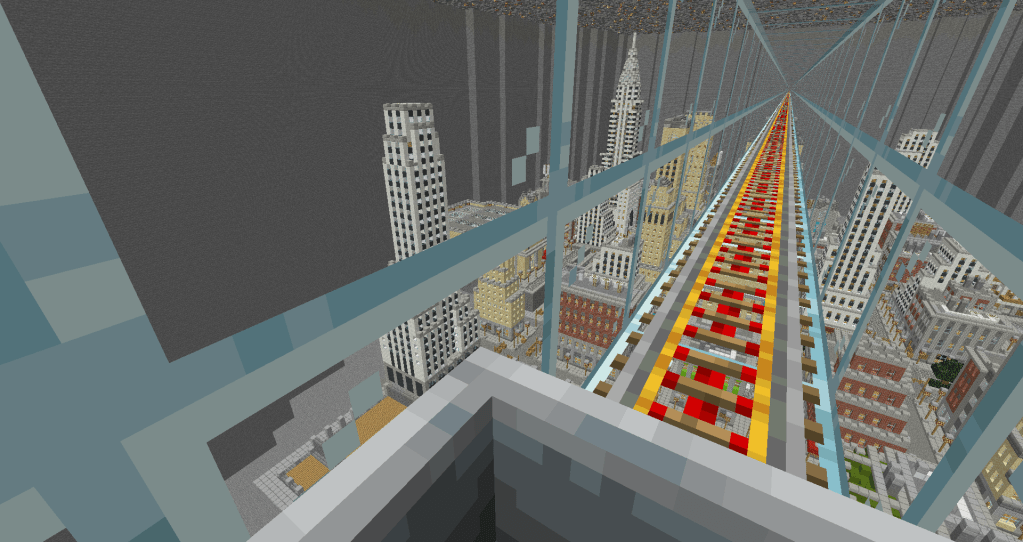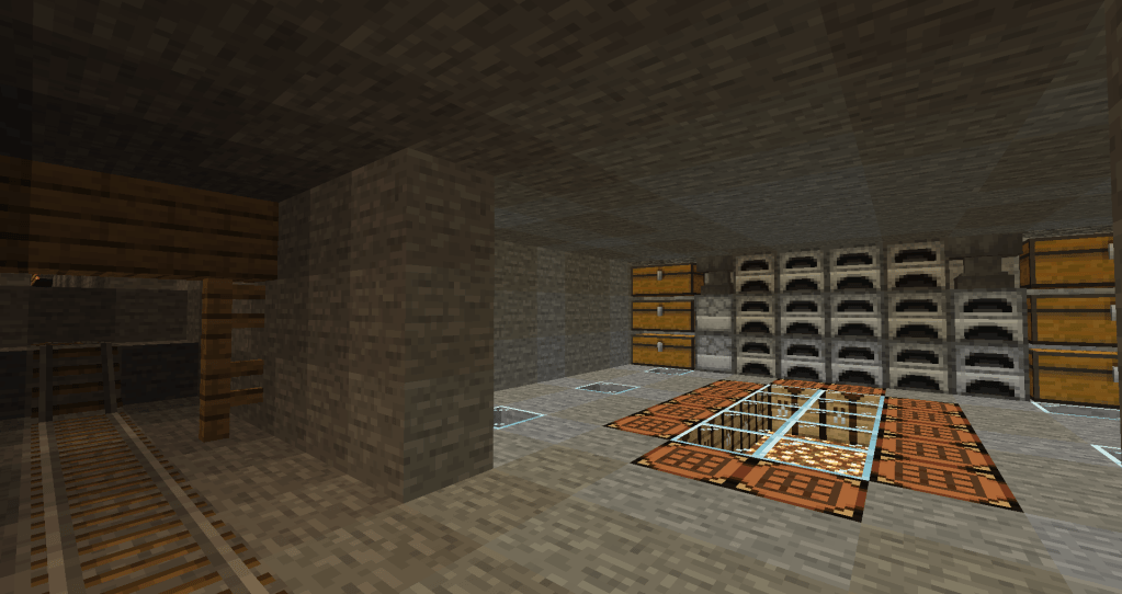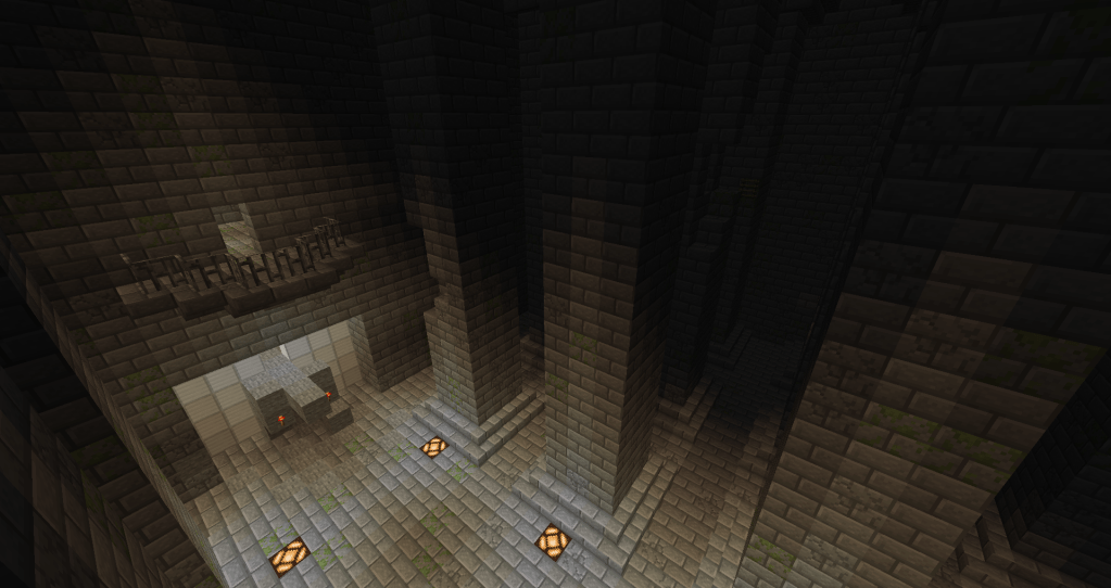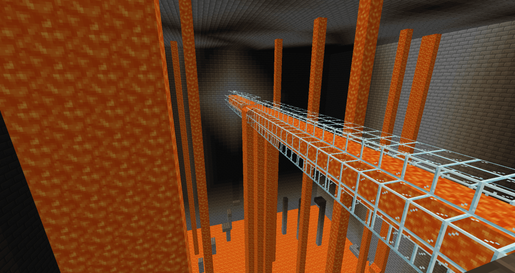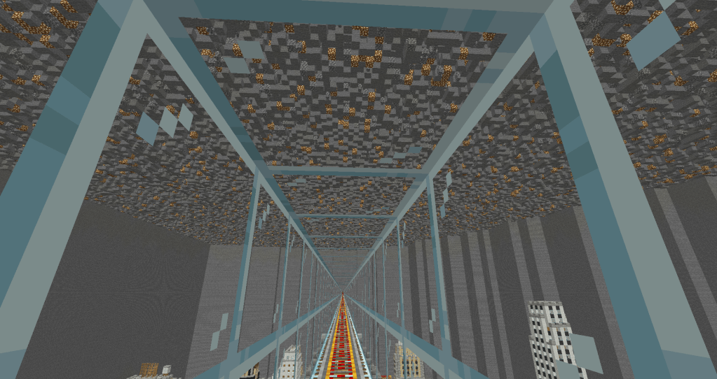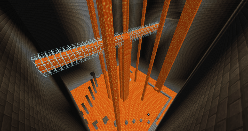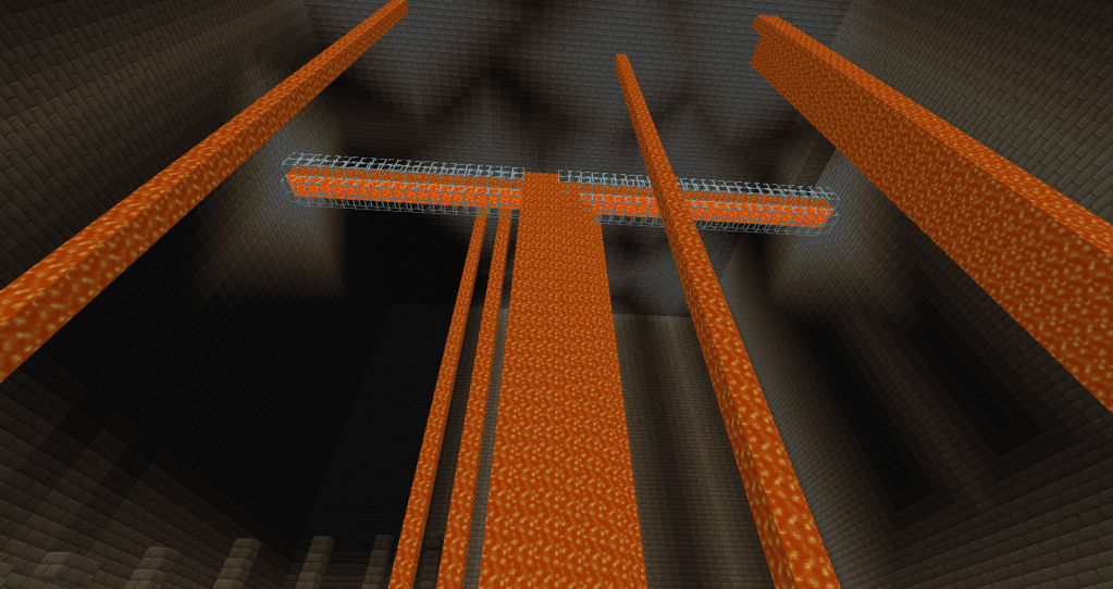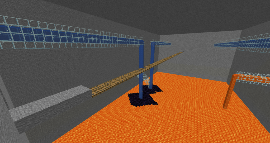 This whole area was supposed to be some large, futuristic-kinda dining area that got sabotaged. I was planning on making an animation with workers up on the lava pipe, then a shadowy figure pull out two creeper eggs like playing cards or something. That’s why that tiny area in the wall exists!