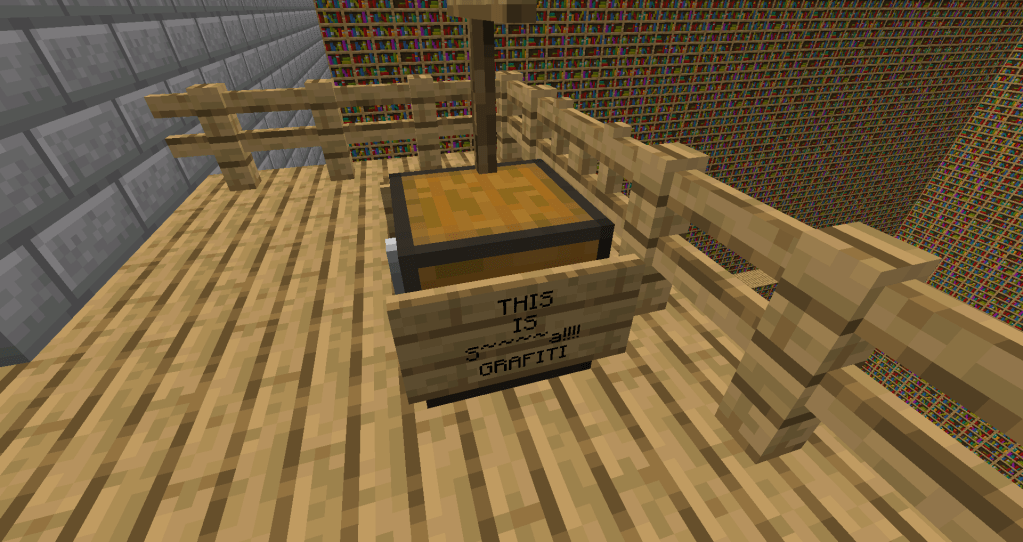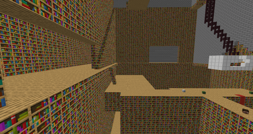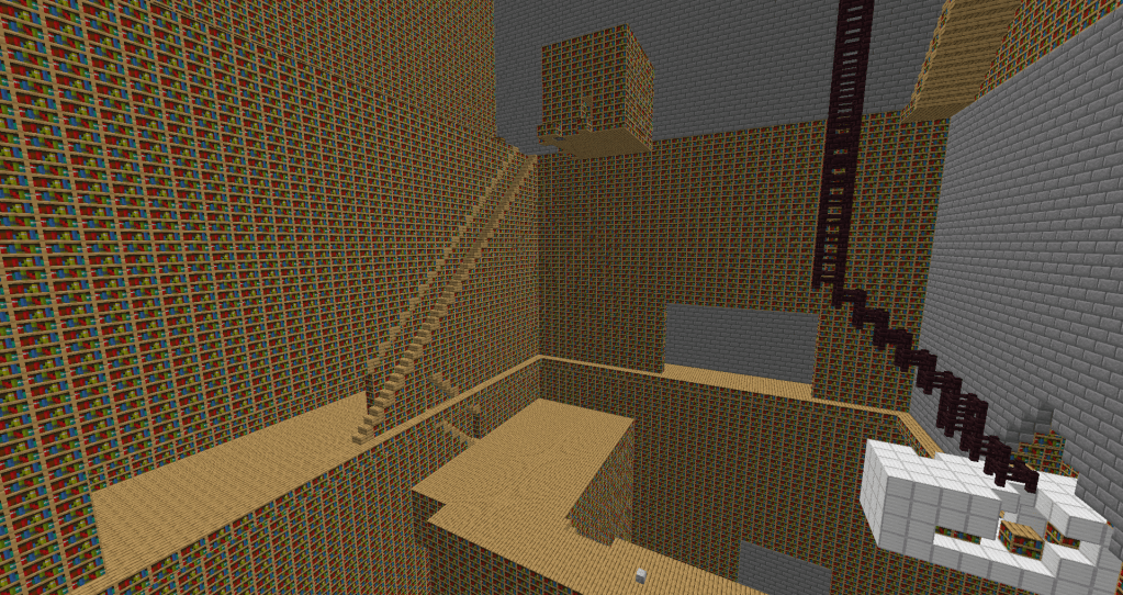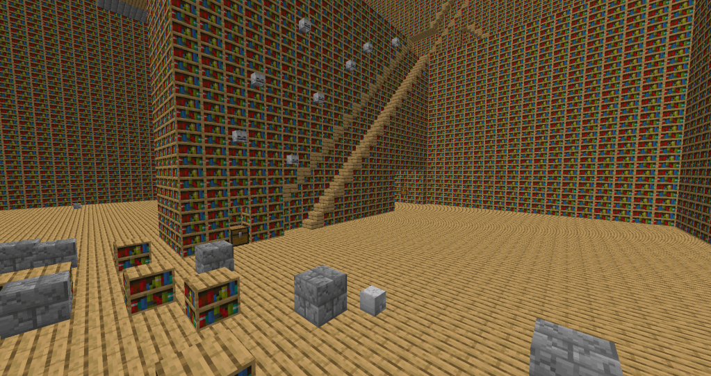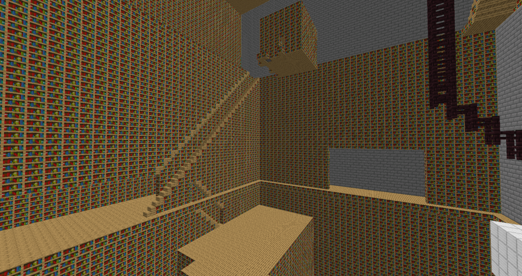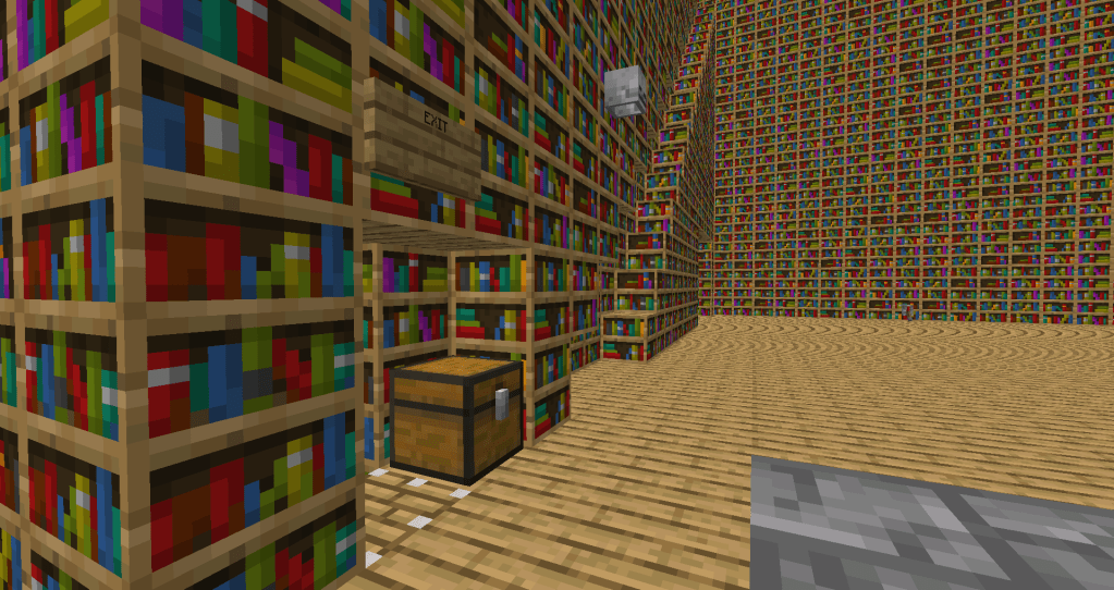 The library… easily the best location I’ve ever made. I haven’t been able to recreate another version with a similar vibe, I’ve tried. Most likely going to be a location in Kook The Cat. Maybe even Tie Hunt?… In this room, in that weird semi floating cube near the top with a small bit of parkour, you would find a sword! THE sword for the map! It had it’s own legend and was the only change in the texture pack that I made myself! It had blood on it! OH two other changes, were some new flint and steel textures actually! Photos from google I squished down…