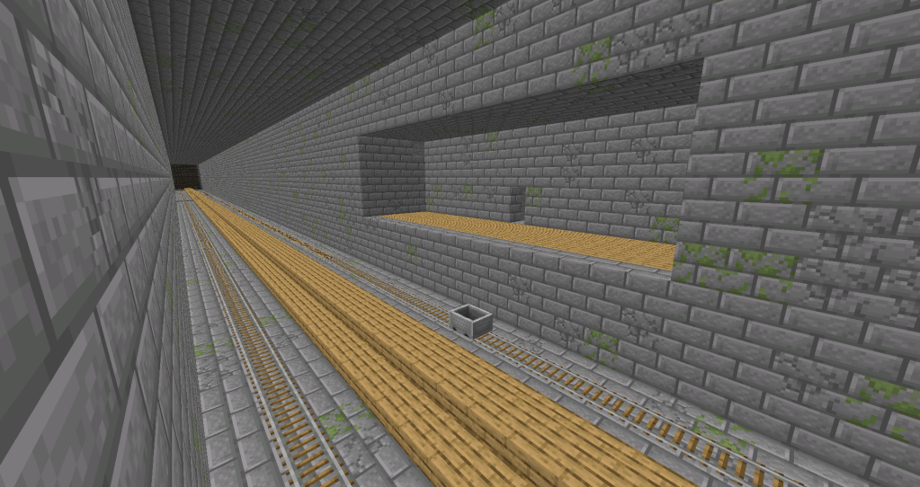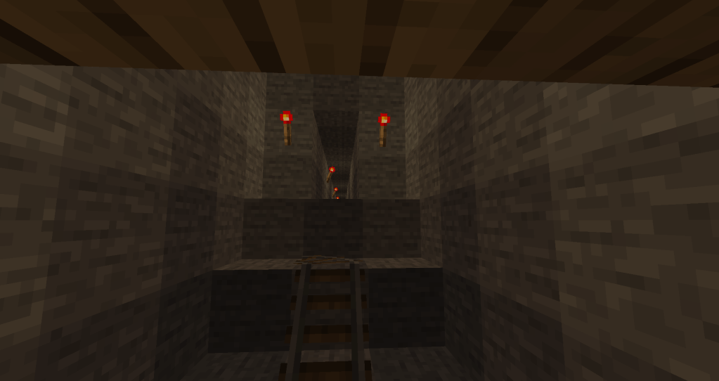 One sorta seamless teleport later… maybe after grabbing your pickaxe?… I was still working this bit out… The exit back out has changed… Herobrine????? No, though I still used his tunnels!